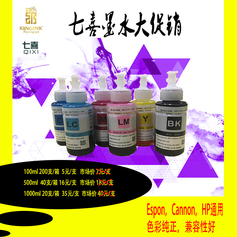 墨水單價(jià)如下,紅黃藍(lán)黑四色(墨水可以通用于EPSON,HP,cannon全系列,特殊打印機(jī)除外)含稅不含運(yùn)費(fèi)